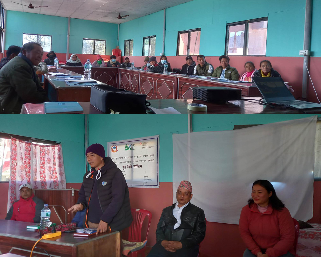 दुई दिन सम्म चल्ने तालिमा जल उपभोक्ता समितिहरुलाई संस्थागत विकास एवंम् निमार्ण व्यवस्थापन तथा गुणस्तर नियन्त्रणका विषयमा तालिम दिन शुरु गरिएको हो । उपभोक्ता समितिलाई साना साना कागजात नपुगेर, प्रकृयाहरु थाहा नभएर भुक्तानी लिन समस्या हुन सक्ने भएकाले सो विषयमा जानकार बनाउन तालिमले सहयोग पु¥याउने साना सिंचाइ कार्यक्रमका संयोजक रमा मगरले जानकारी दिनु भयो ।