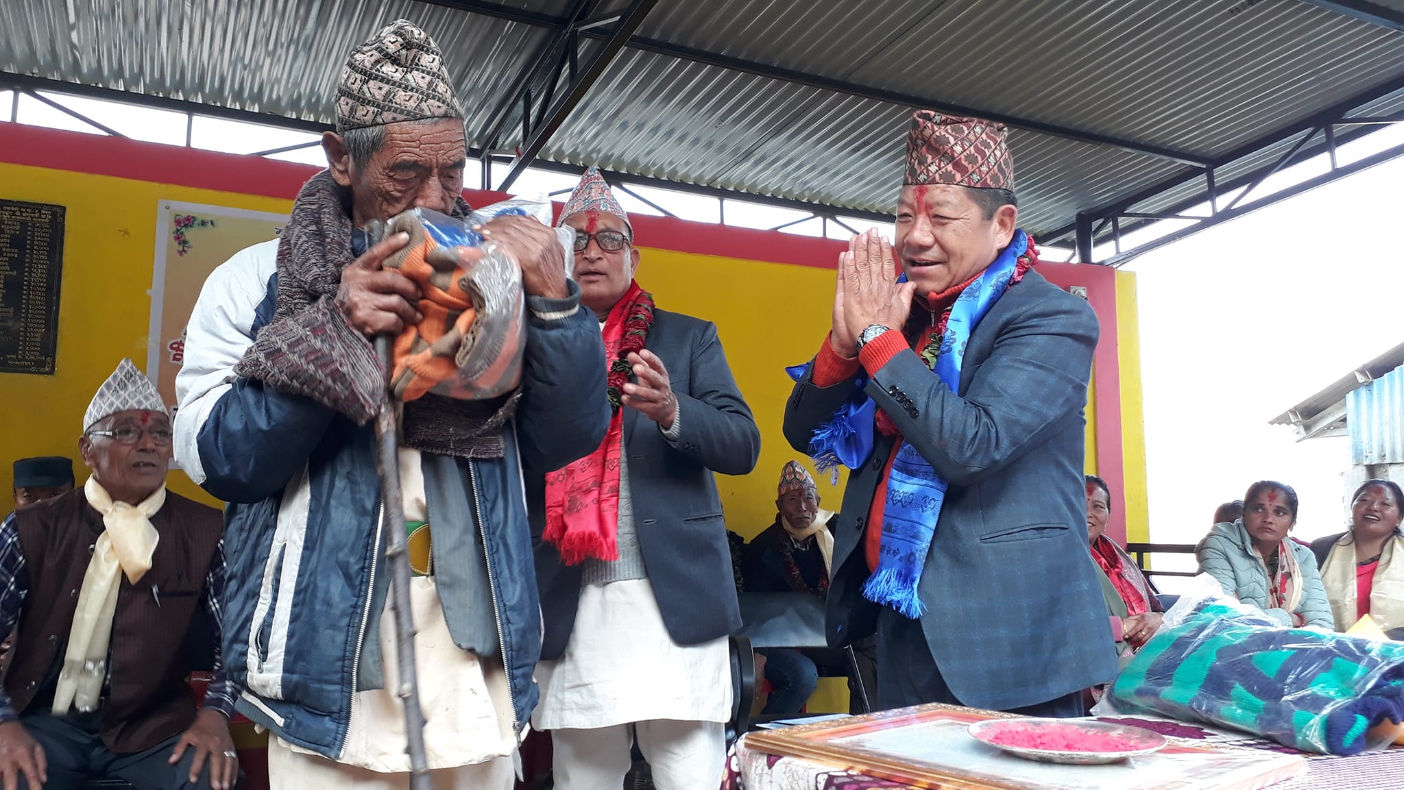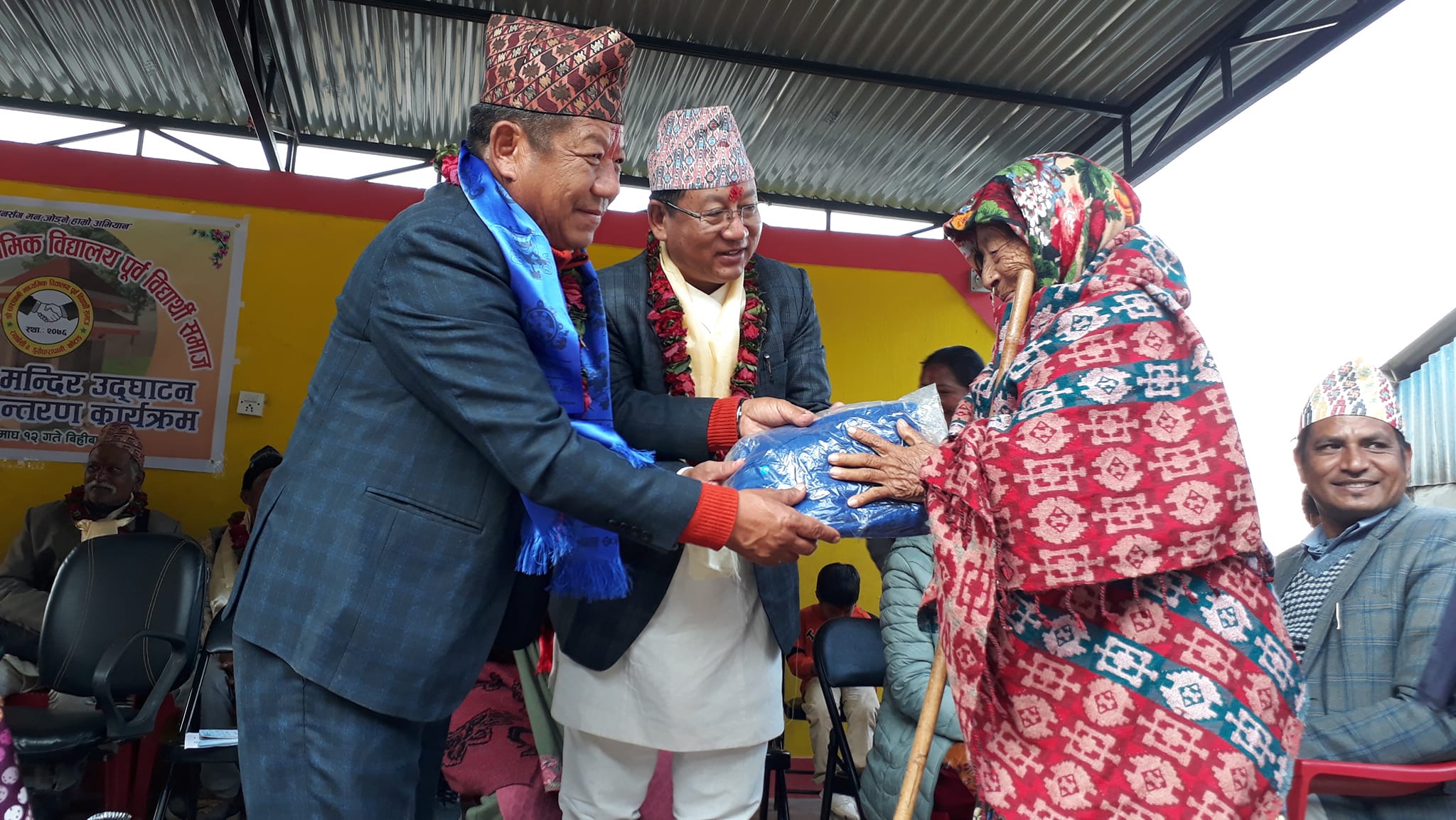 कार्यक्रममा सांसद राईले ८० बर्ष नाघिसेको ७ जना वृद्धा र ८ जना वृद्धहरुलाई न्यानो कपडा वितरण गर्नु भएको छ । यस्तै विद्यालय परिसरमा मन्दिर निर्माणका लागि ५० हजार रुपैया भन्दा माथी चन्दा उपलब्ध गराउने दिपक कुमार खुलाल (५०,५००।–) र मेघराज भट्टराई (१,५०,०००।–) लाई तामपत्र सहित सम्मान गरिएको छ ।