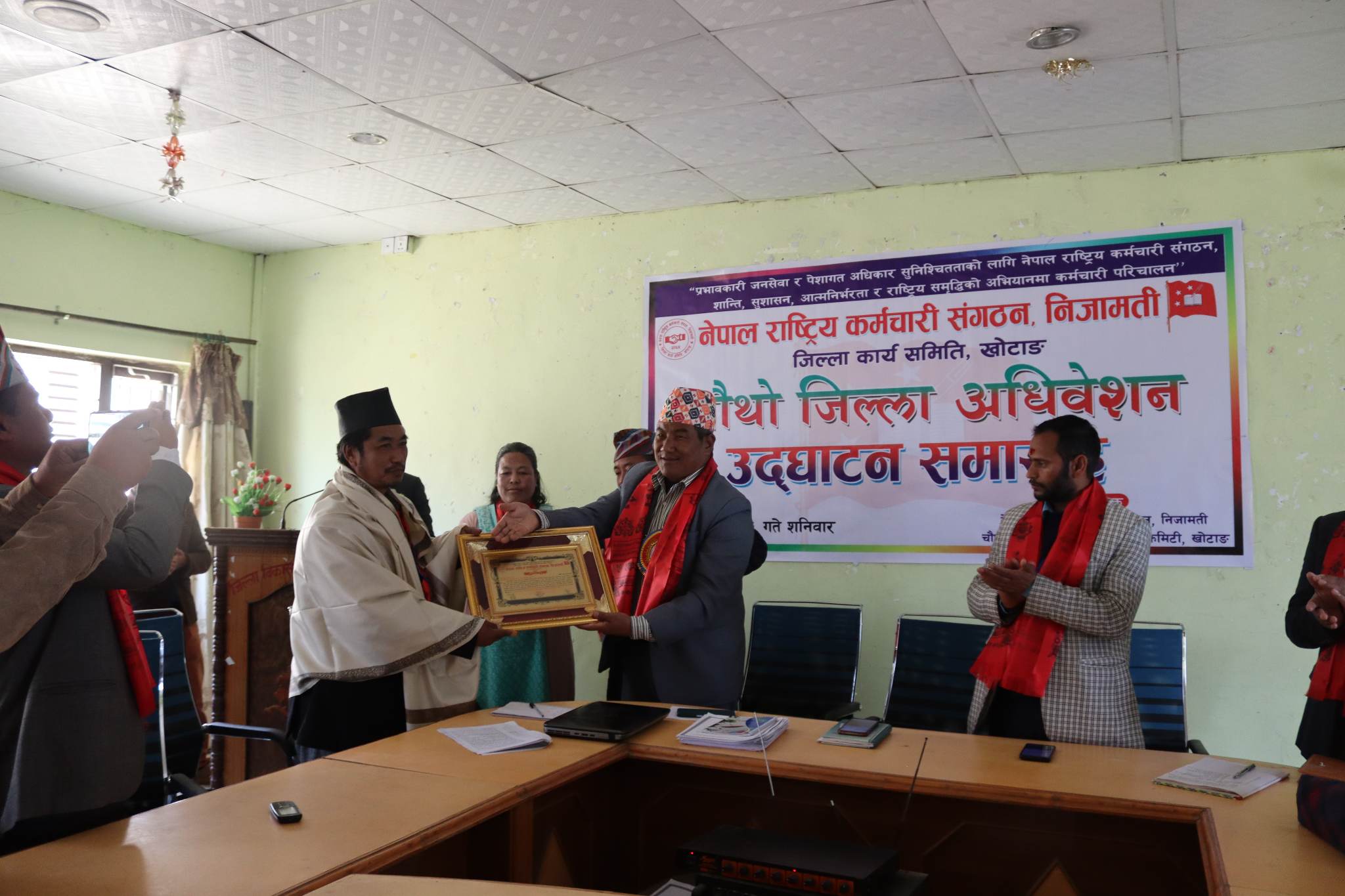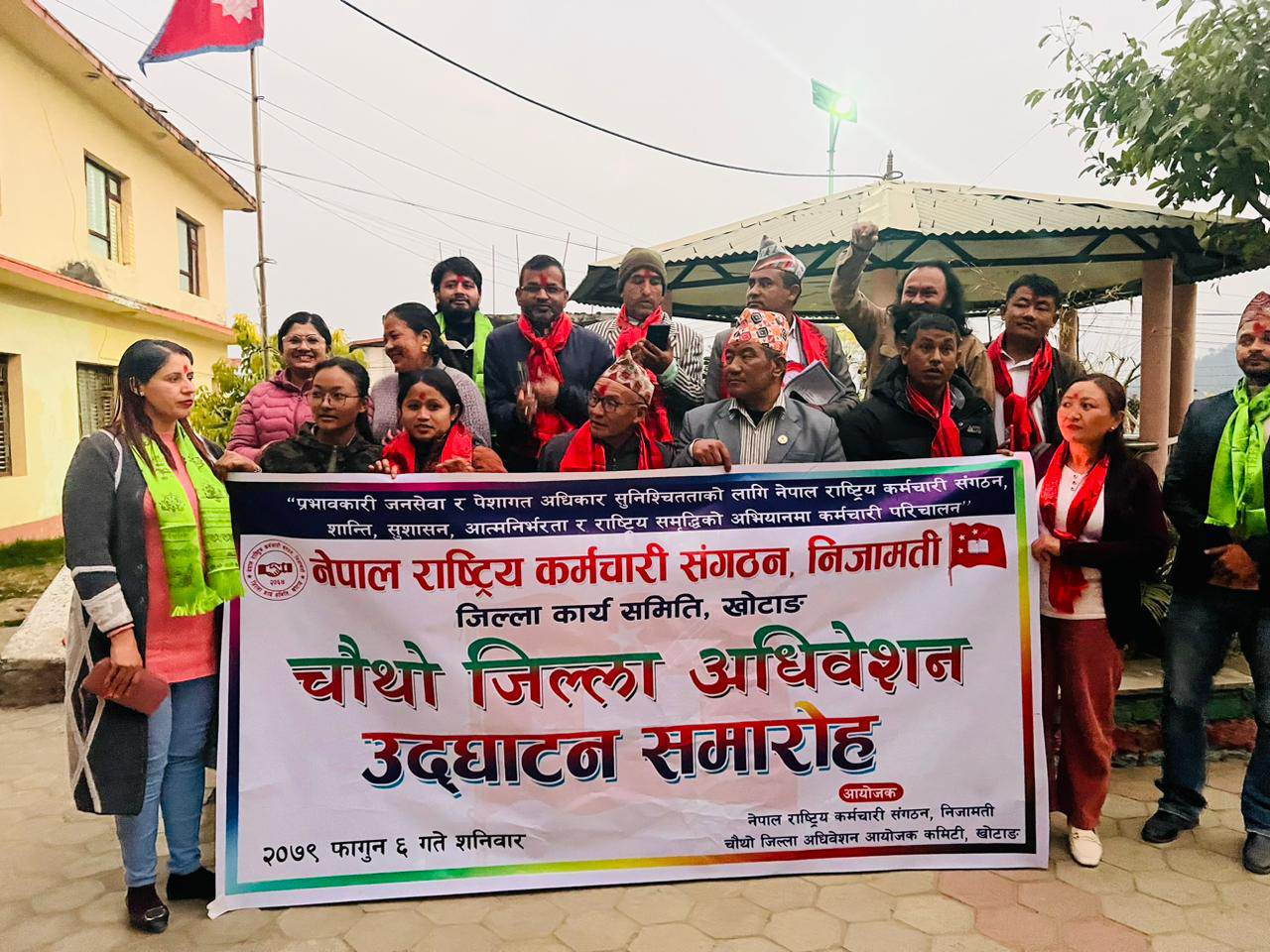 फागुन, ६ शनिबार । नेपाल राष्ट्रिय कर्मचारी संगठन निजामतिको चौथो जिल्ला अधिवेशन शनिबार सम्पन्न भएको छ । नेकपा माओवादी केन्द्रका केन्द्रिय समिति सदस्य तथा प्रतिनिधी सभा सदस्य रामकुमार राई पासाङले उद्घाटन गर्नु भएको अधिबेशनले चित्रकुमार सुवेदीलाई अध्यक्षमा निर्वाचित गर्दै अधिवेशन सम्पन्न भएको हो ।