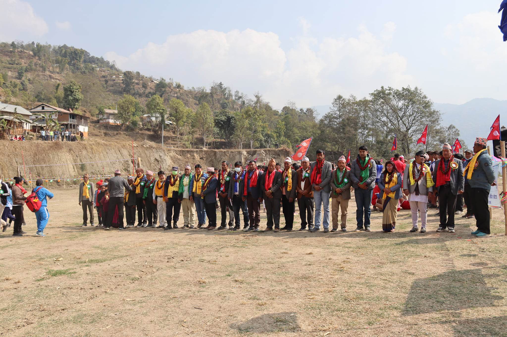 फागुन, ७ आईतबार । साकेला गाउँपालिका स्तरीय राष्ट्रपति रनिङ शिल्ड प्रतियोगिता साकेला गाउँपालिकाको नौलाखर्क खेल मैदानमा शुरु भएको छ । नेकपा माओवादी केन्द्रका केन्द्रिय सदस्य तथा प्रतिनिधीसभा सदस्य रामकुमार राई पासाङले प्रतियोगिताको उद्घाटन गर्नु भएको हो ।
