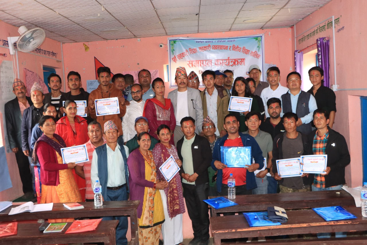 खोटेहाङ । खोटेहाङ गाउँपालिकामा पूर्व सहकारी शिक्षा, सहकारी व्यवस्थापन र वित्तिय शिक्षा सम्बन्धि ६ दिने तालिम शुक्रबार सम्पन्न भएको छ । खोटेहाङ गाउँपालिकाको आर्थिक सहयोगमा संचालन गरिएको तालिमको आयोजना जिल्ला सहकारी संघ खोटाङले गरेको हो ।