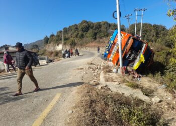 खोटाङ । २०७९ साल माघ ११ गते बुधबार दिक्तेल रुपाकोट मभुवागढी नगरपालिका १३ नुनथला माहुरेमा काकडभिट्टाबाट यात्रु लिएर आएको बस दुर्घटनामा प¥यो । माहुरेको प्राविधिक शिक्षालय कट्ने बितिकै बस पल्टदाँ ७ जना यात्रुहरु घाईते भए । एउटा रुखको ठुटोमा बस नअडिएको भए धेरैको ज्यान जानपनि सक्थ्यो । धन्न...